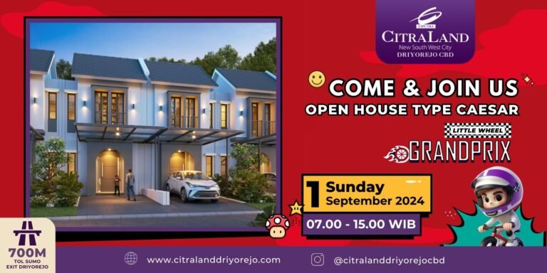 CitraLand Driyorejo CBD kembali mengundang Anda untuk hadir di acara Open House Fluid Painting yang akan diadakan pada tanggal 11 Agustus 2024 pukul 08.00 -17.00 WIB dan bertempat di Marketing Gallery CitraLand Driyorejo CBD. Free register dan penawaran terbatas! Kegiatannya merupakan home tour: New Type Caesar, Fluid Painting, Special Gift Ferris Wheel Ticket dan Free Snack Drinks.